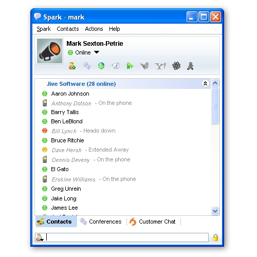 Il modulo Chat aggiunge un sistema di instant messaging alla tua installazione di VoiceOne e permette, oltre allo scambio di messaggi di testo e files tra gli utenti del sistema, anche di monitorarne lo stato e quindi sapere se un interno è libero, occupato o se sta squillando direttamente dal monitor del tuo computer. Il client che si interfaccia a VoiceOne è multipiattaforma per cui è disponibile per tutti i sistemi Windows, Mac Os X e Linux. Il sistema funziona sia per gli utenti locali che per quelli remoti. Con questo modulo ogni interno di un sistema VoiceOne può monitorare lo stato degli altri interni senza avere bisogno quindi di un telefono avanzato dotato di parco lampade.