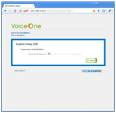 La prima operazione da compiere per rendere il sistema operativo è eseguire il Setup. Per farlo, una volta collegata la macchina alla rete, è sufficiente aprire il proprio Browser Web (Internet Explorer, Firefox o Safari) e andare all’indirizzo https://192.168.1.100/voiceone/setup.php . La procedura di setup è strutturata in sei fasi: